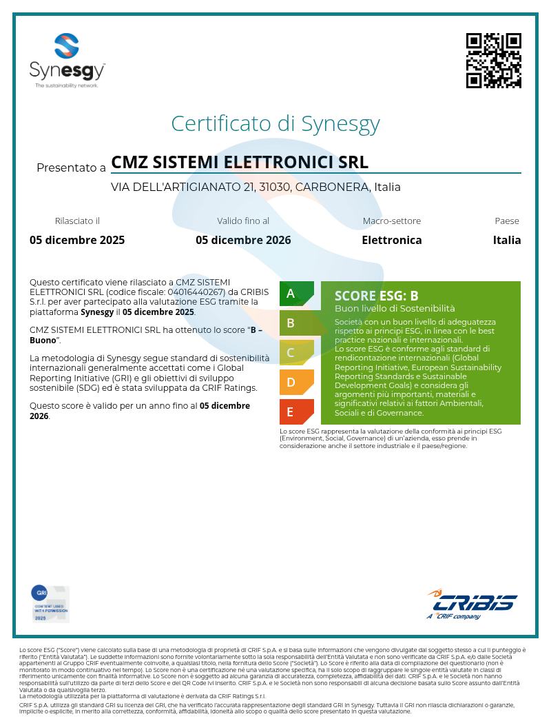 The score achieved of 47 places CMZ in category BBB. It should be noted that, in reference to the 11 modules examined, in 9 out of 11 we performed better than Italian average while in 8 out of 11 better than the average of our competitors: a result encouraging us to vigorously continue on this journey.